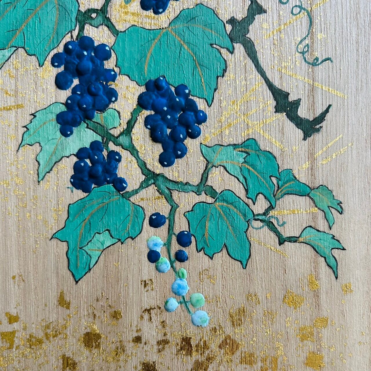 艶やかに実る山葡萄を、日本画の技法で丁寧に描きました。